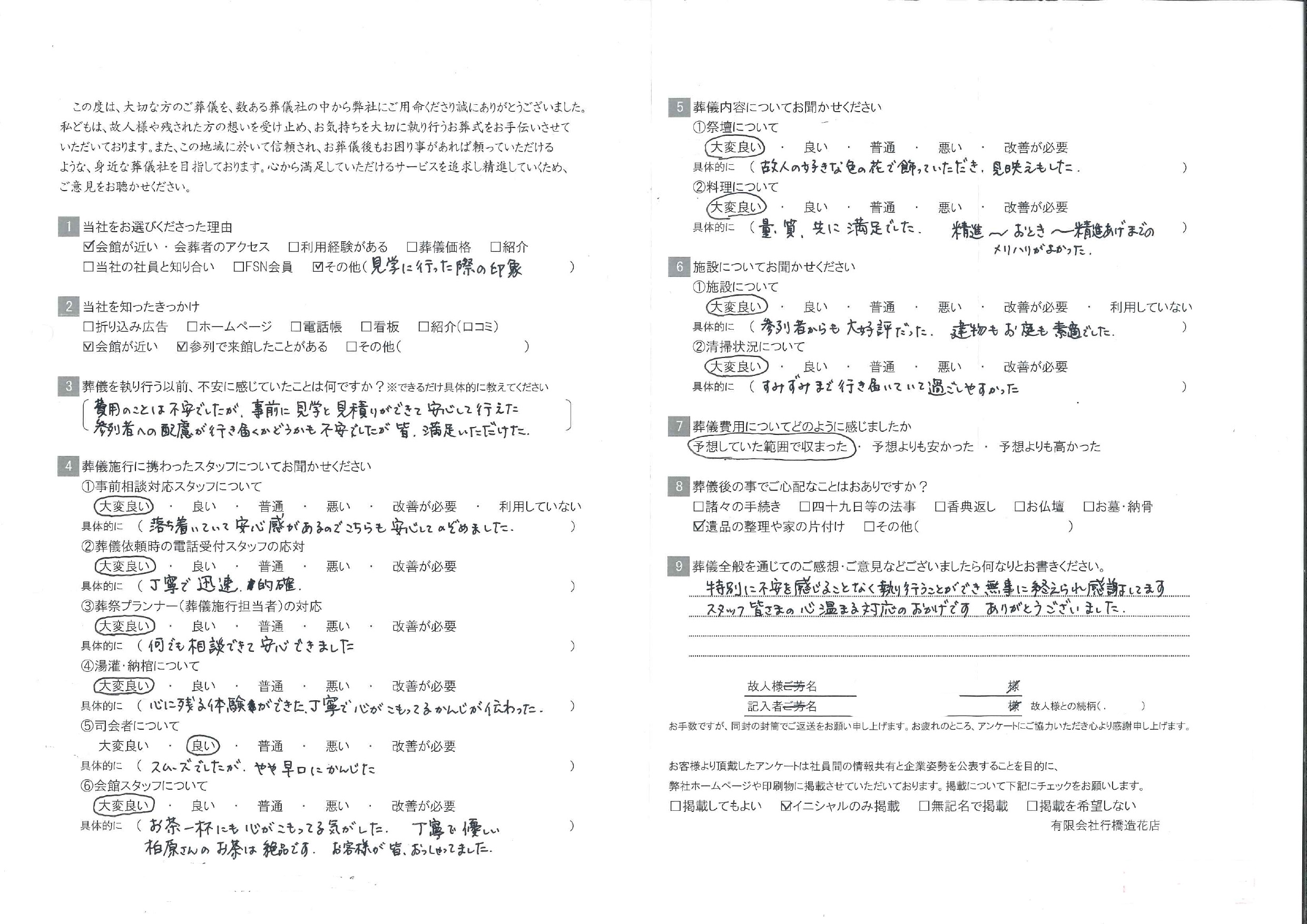 実際に行橋造花店でお葬式をされたお客様のお声です。