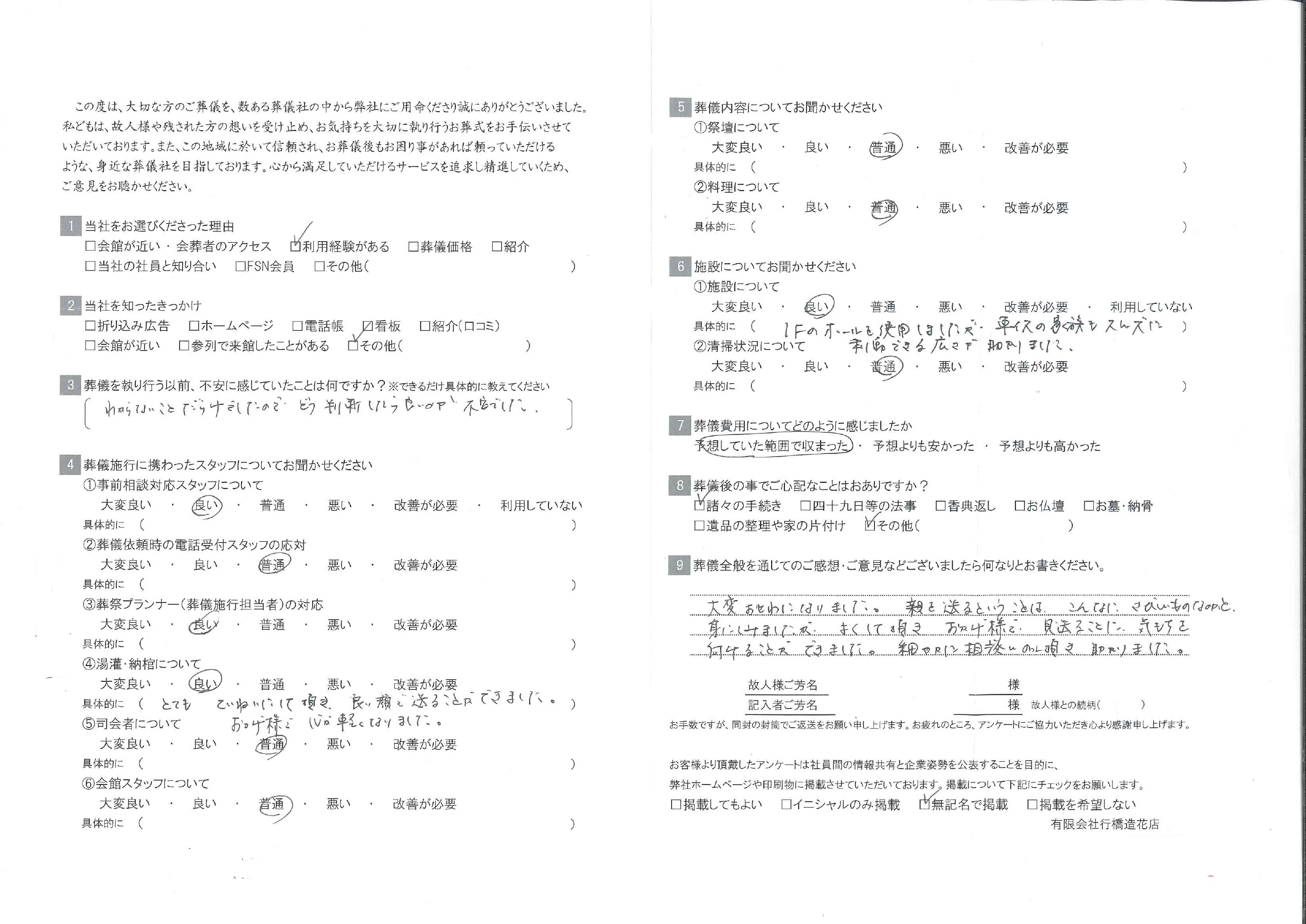 実際に行橋造花店でお葬式をされたお客様のお声です。